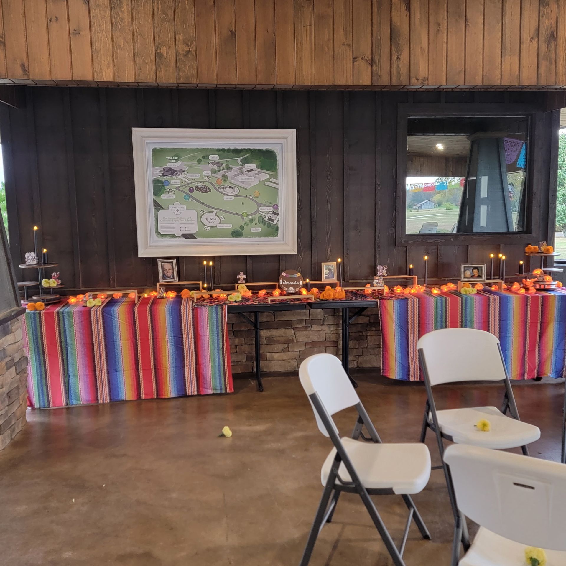 With a breath-taking view of the Great Smoky Mountains, the venue space is nestled on the campus of Grandview Cemetery and is an ideal location for corporate events, wedding ceremonies and receptions, memorial gatherings, celebrations of life, high school reunions, and smaller types of events. It is approximately 1700 square feet under the covered pavilion area and is equipped with tables, chairs, kitchenette access, and restrooms.
